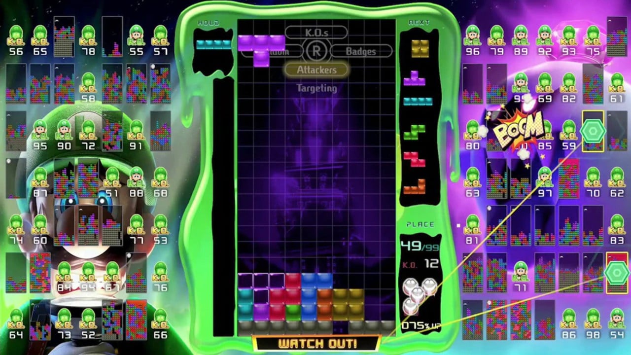 Tetris 99 was released in 2019 as a Switch exclusive and is a “battle royale” Tetris game. What that means is that in the game, you use Nintendo’s online service to play a game of Tetris against 99 other people over the internet. As time goes on more and more people get eliminated until only one is left, and they are declared the winner. There are also local co op options. Back in 2019, the game was an enticing prospect in getting people to sign up for the Nintendo Online Service.