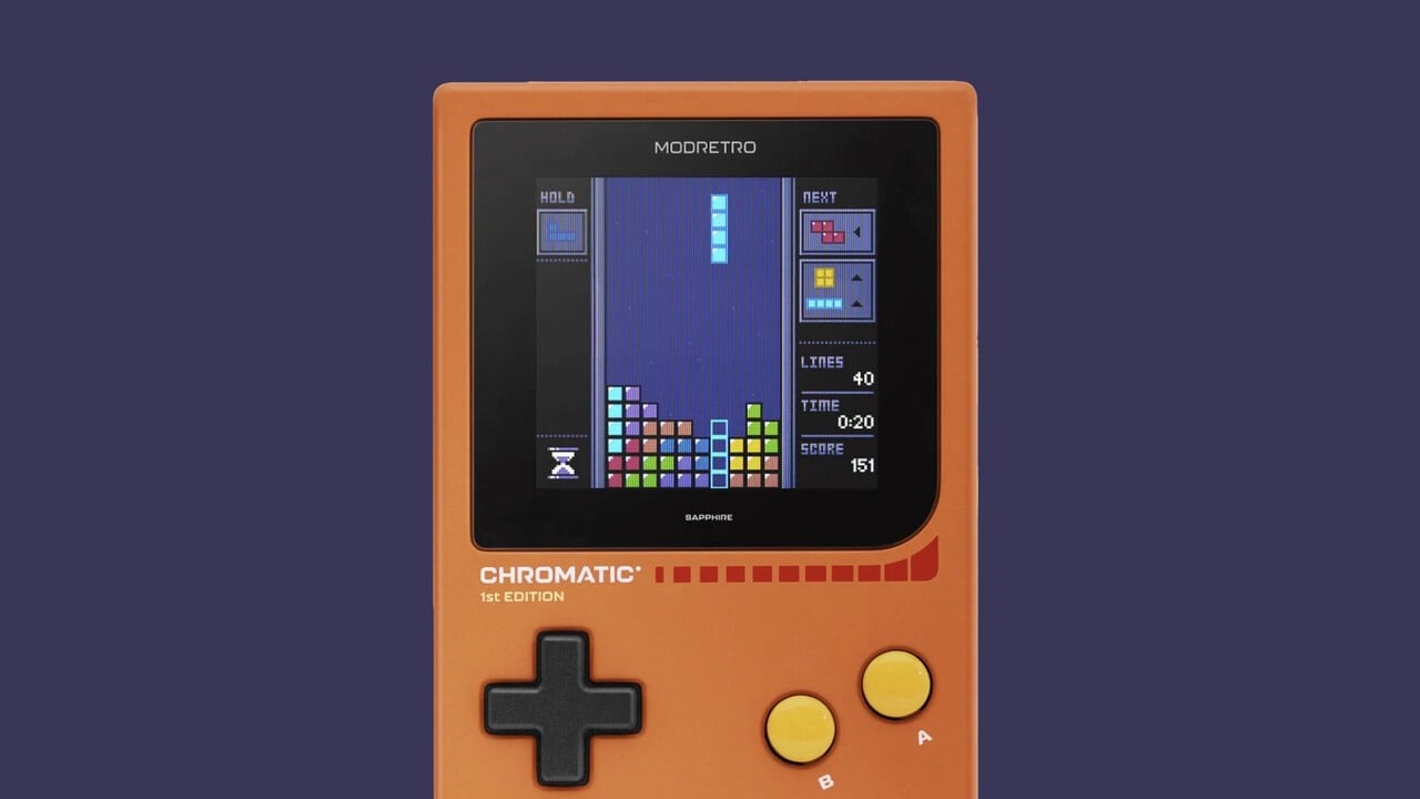 The ModRetro Chromatic is basically a premium modern-day Game Boy that was released in 2024. Similar to the Analogue Pocket in being a system that aims to replicate the hardware of Nintendo’s Game Boy and Game Boy Color, new titles were also developed for the system. The pack-in title was a new Tetris game. The game, titled simply Tetris, is in full color, has great presentation, and it even has a simple save system. Only the high score of each profile is saved, but if you create and use multiple profiles, you can get a good list of high scores on your system.