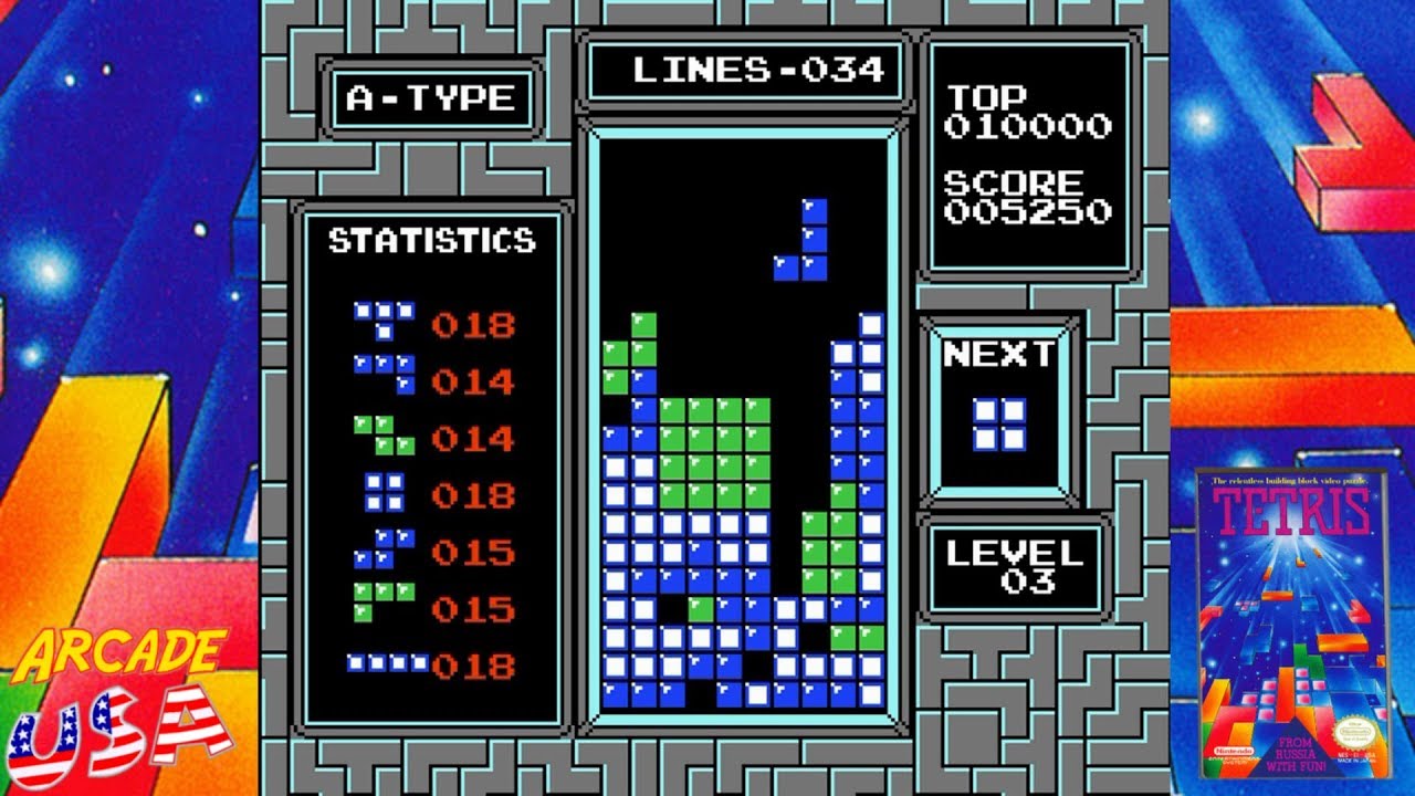 Released on the same day as Tetris for the Game Boy in 1989, the home console version was very similar to the handheld version, utilizing the same presentation that portrayed Russia as a distant, exotic land. The main advantage it had over the Game Boy’s Tetris was that it was in full color, blocks used green and blue color schemes, and generally everything looked a bit sharper. The game retained the same satisfying, addictive gameplay as the version of Tetris which first released for the PC a year earlier.