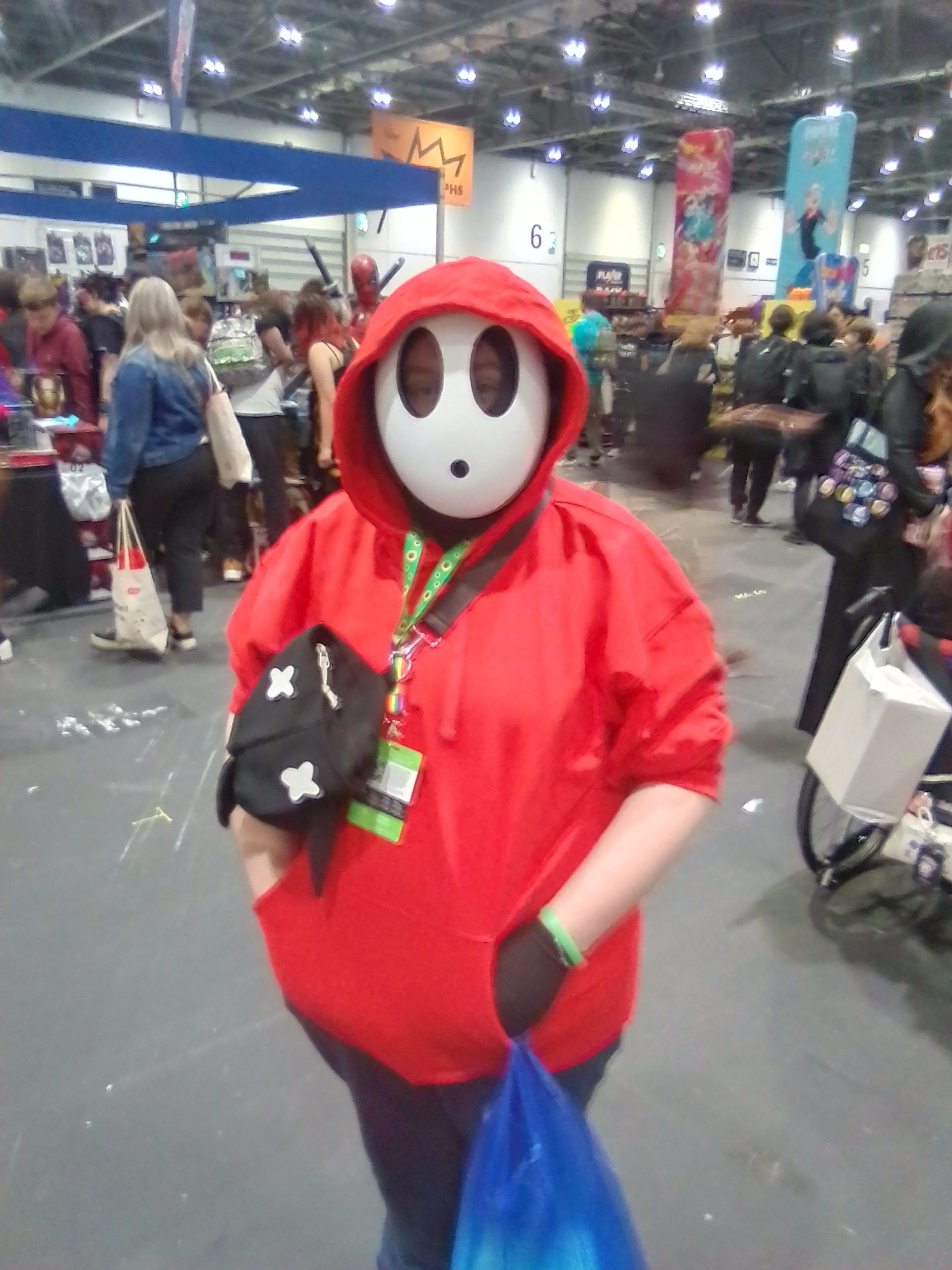 This person is dressed as a Shy Guy from the Mario series.
