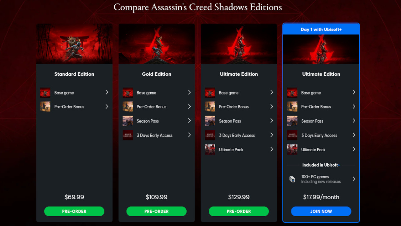 The ever-controversial pre-order page showcases that Assassin’s Creed Shadows will lock its Photo Mode’s Red Dragon filter behind this premium edition. It’s also very much following a similar pre-order model that Star Wars Outlaws abides by, with an exclusive quest for a “measly” $109.99. But, at least, Outlaws didn’t lock a filter behind its Ultimate Edition.