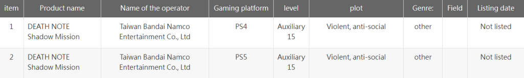 As reported by Gematsu, a new rating has been filed in Taiwan related to a Death Note video game. Death Note Shadow Mission has received a rating for PS4 and PS5 and will be published by Bandai Namco.