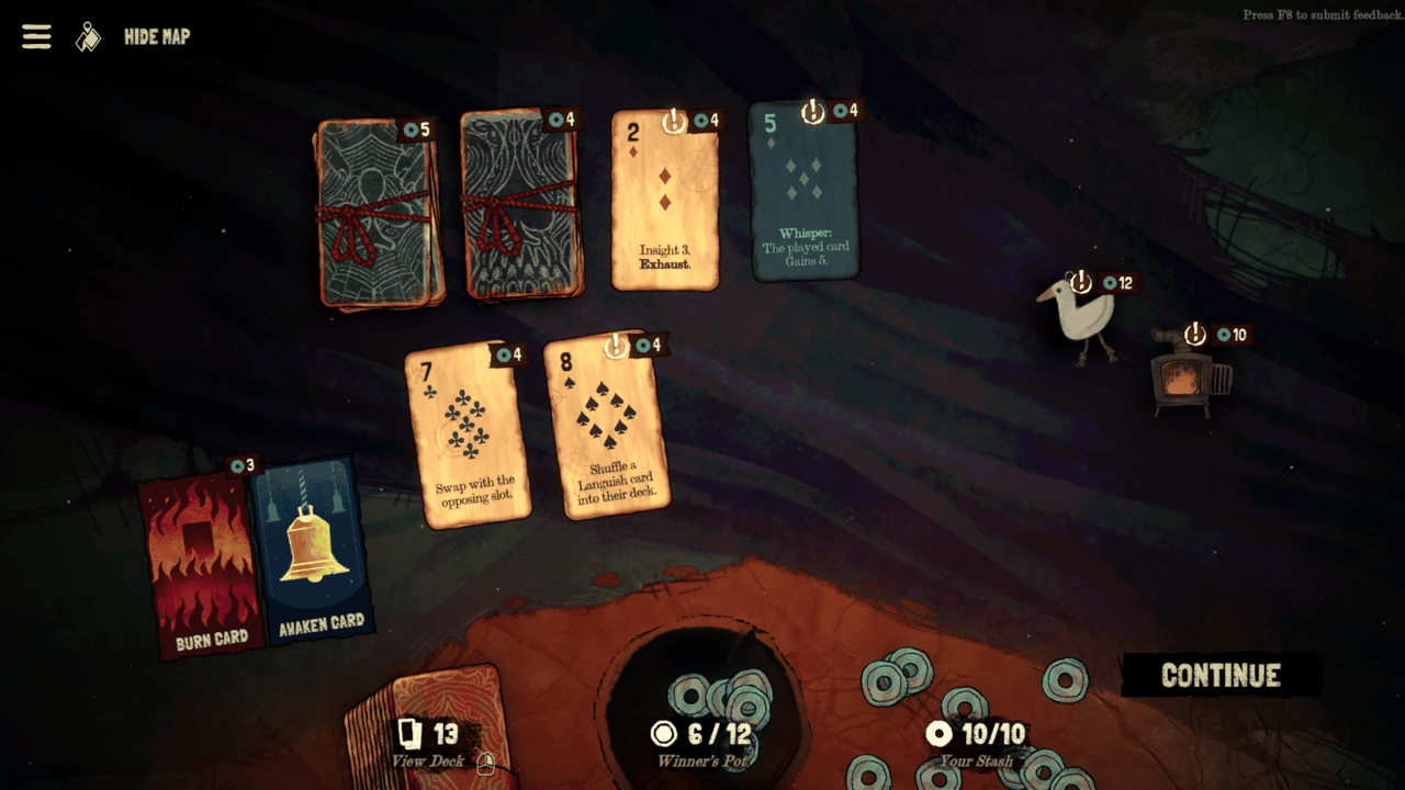The branching path through the underworld is filled with important decisions that can make or break any given run, especially for those not thinking ahead. When every hand can be the difference between starting over or barely getting by, it is a fitting scene for a game of cards with the highest stakes.