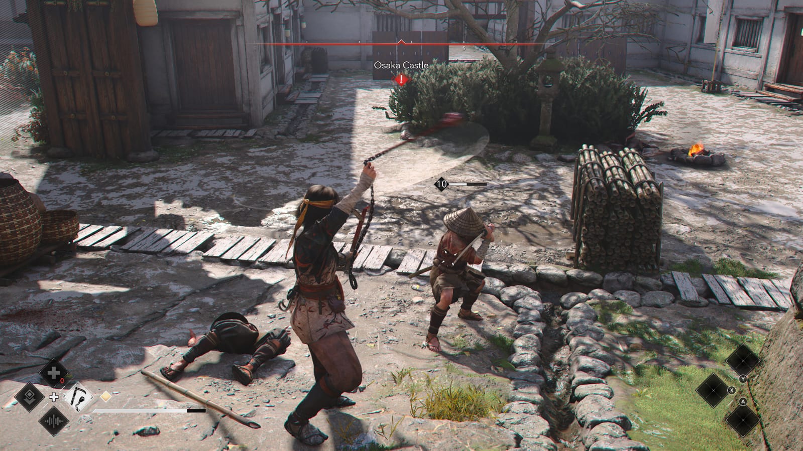 Regarding our protagonists, the same differences apply here as in combat — Naoe uses her shinobi training to expertly sneak around and stage attacks. In contrast, Yasuke cannot match her graceful movement. This is evident in Yasuke’s limited traversal abilities. Don’t expect Yasuke to climb up high to reach a viewpoint or walk onto a rope to cross to another building. In this sense, Yasuke’s gameplay may leave more to be desired, and can be seen as being unbalanced compared to Naoe, who is my favorite to play as due to her fast and varied skillset.