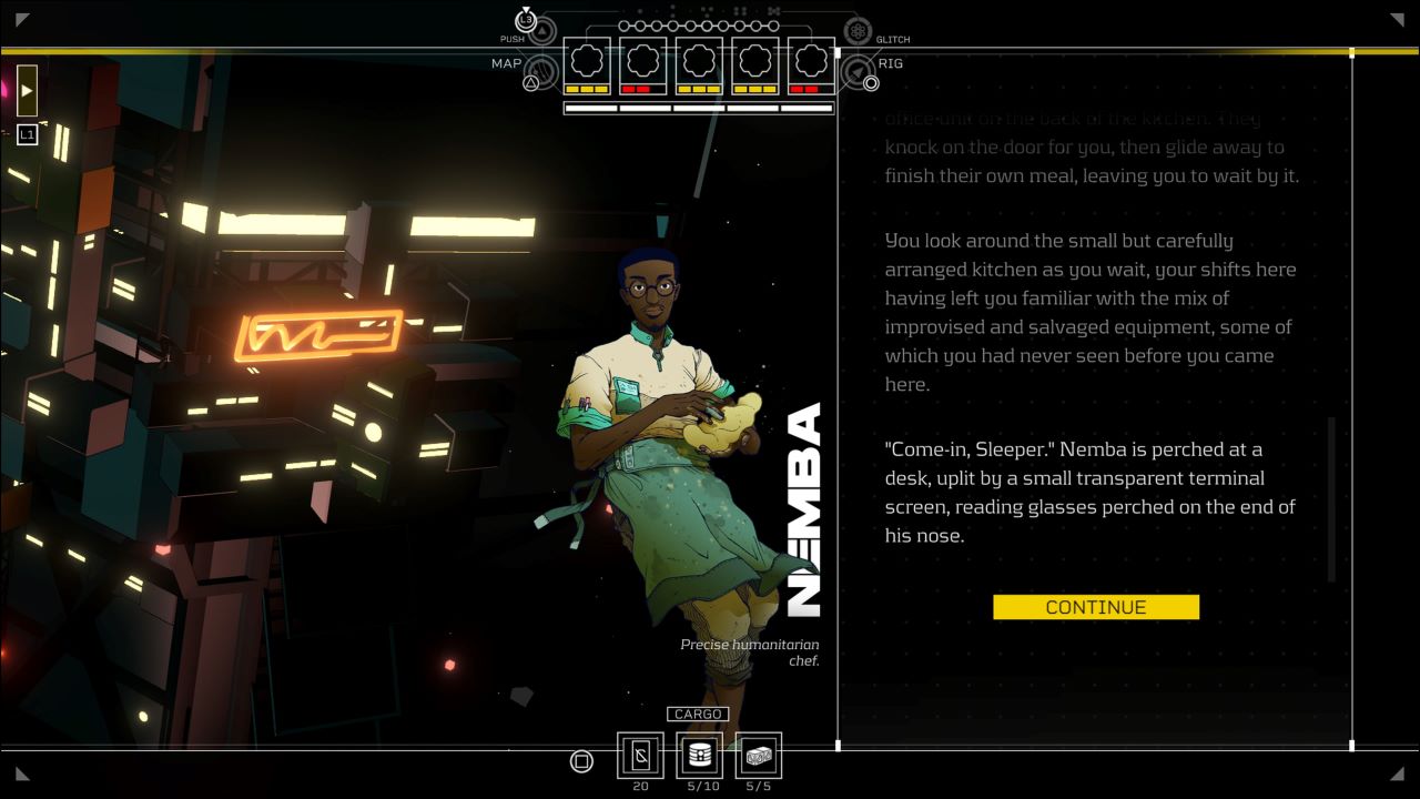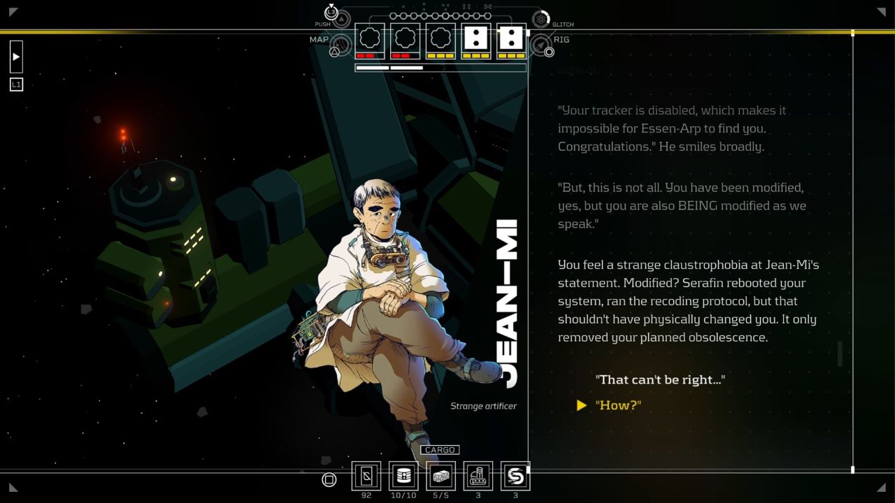 The pressures and hostility are reinforced in the resource management that permeates Citizen Sleeper 2. While you may not need Stablizer, you do need supplies to eat, fuel to power your ship, components to make repairs, and money to buy all this stuff. On the small scale, just making enough money or scavenging enough supplies can be a challenge, especially if you are already exhausted from previous adventures. There were multiple times I was at the edge of my seat trying to earn enough to bounce back from a failed job.Â