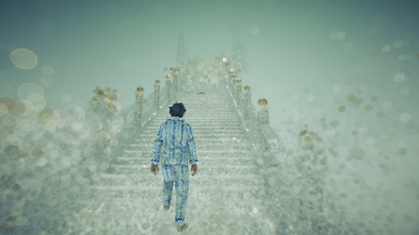 Looking around and immersing myself in the world, it became obvious very quickly that this was art in video game form, the most telling feature coming directly from the main mechanic of the game. The world is made up of little dots; even after being shot or exploded by grenades or a rocket launcher, the dots, instead of manifesting clearly, collapse on each other. This art style is one of my favorites; it brings to mind those art pieces made up of millions of little dots in various shades and hues. At times, the art style alone made me find every piece of the maps and put them all together to admire. I’d also find myself almost subconsciously aiming my camera around the area to create scenes of my own. Without a doubt, Dreams of Another is a beautiful game, and the art style, while not standard, is my own personal favorite I’ve experienced in a game.