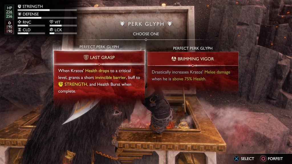 After your first trip to Valhalla, you will be able to select your preferred loadout selecting a limited-use relic, a shield, and your rage ability. You are free to choose whatever you want, but before you start each run, an item will be highlighted as rewarding more Mastery Seals on this attempt.