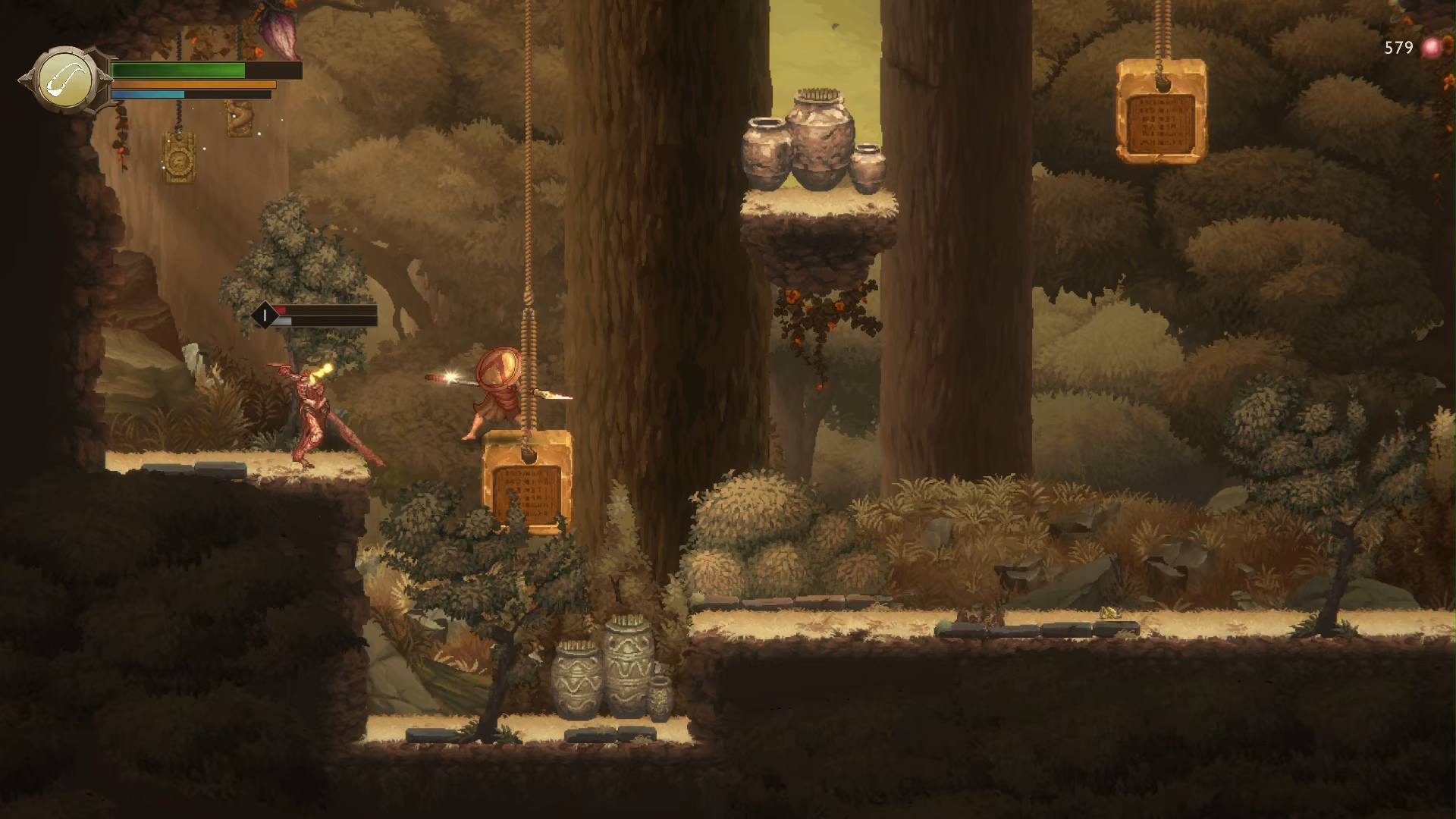 Weirdly enough this game actually had quite a bit of bugs and truly bizarre game design decisions. Sometimes the audio would desync and all of the spoken dialogue would either be delayed or the sound effects would just disappear into the ether. I had a few instances where enemies would get stuck on geometry or their AI would just stop working and not do anything. I’ve never seen a metroidvania have bugs like this and I even had the game crash on me. To be fair as I played it, the bugs and performance did get fixed or they were less prominent. Unfortunately, they couldn’t fix the ledge issue when it came to enemy placement. There is this strange issue I have never had before in a metroidvania where sometime enemies would camp out at ledges because they see you and you can’t jump over or pass through them because the game only allows for ground dodges. So there are moments where I am trying to reach a ledge through platforming and I’ll just be spiked down back to a poison pit because I had the audacity to want to progress.