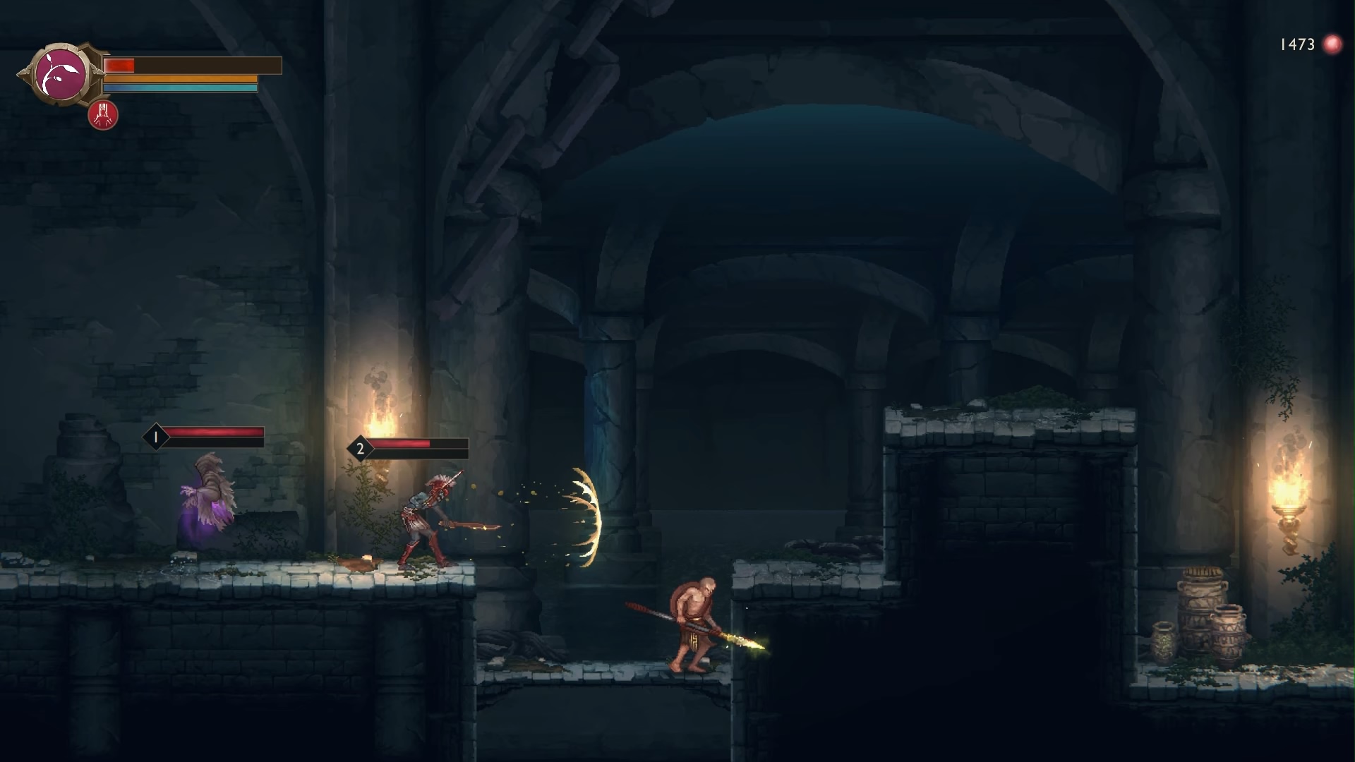 The bosses in this game are the highlight to me, being so much fun to beat. They are aggressive and have interesting gameplay gimmicks without feeling too unfair. The Blood Ichor boss in the vineyard was really fun and even involved Deimos as your companion in the fight making it feel like you’re fighting with your brother against an overwhelming foe. In fact most of the fights and gameplay moments where you are with Deimos tend to be the most engaging, otherwise most of the time he just disappears during the gameplay to explore ahead or hang out at a campfire.