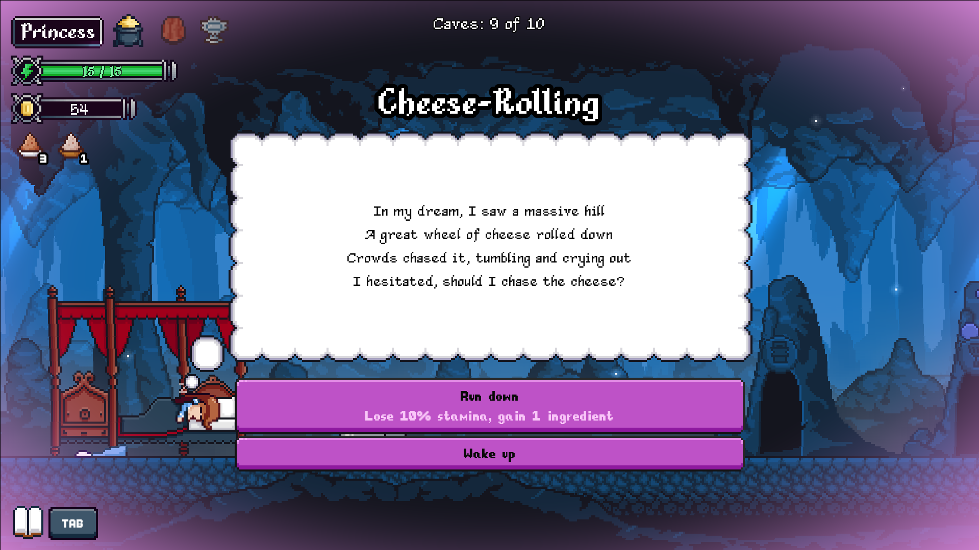 Hungry Horrors takes the common fantasy setting we see in roguelites up a notch; instead of battling and killing monsters that stand in your way, they are cursed to be hungry. As the princess of the land, it is up to you to ensure that they are fed, with traditional foods of the British Isles, and not yourself. The game uses traditional foods and traditional mythical beings. And it’s entirely folklore-based, down to even some NPCs that you meet throughout the story. It’s a setting rich in real-life comparisons and especially rich in nerdy lore. From Spriggans to Dullahans, mythological beings of all shapes and sizes show up, hungry and ready to eat. Players travel through different locations with their own unique enemies and bosses in standard roguelite fashion, progressing the story through multiple runs. It doesn’t reinvent the core of roguelites; it just tweaks it into a unique experience.