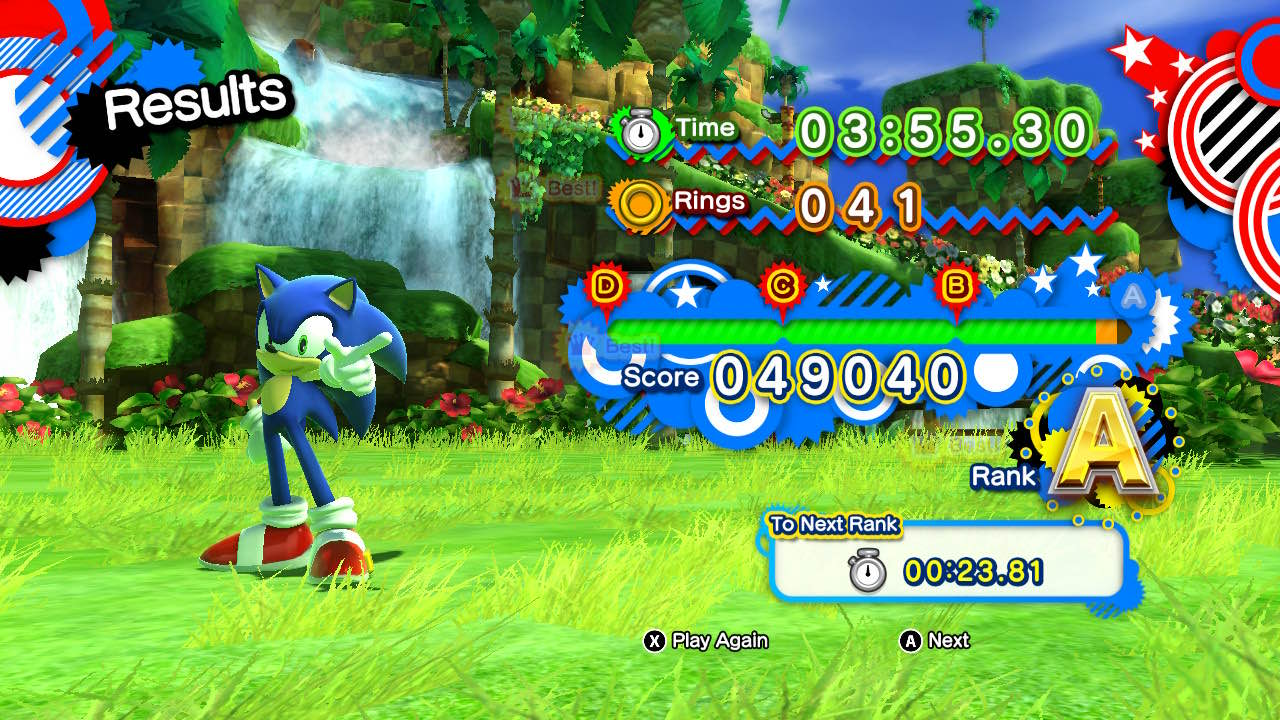The gameplay is simple and consists of clearing levels, beating challenges, and engaging in boss fights. The levels in Sonic Generations are divided into two Acts, each act representing Sonic from different points in time. Act 1, featuring the younger Sonic, represents early Sonic games with a 2D side-scrolling perspective while Act 2 represents the 3D Sonic games of today. Both acts are fun to play, but it is worth noting that Act 1 is usually easier than Act 2. The levels in Shadow Generations are a bit harder than the Act 2 levels in Sonic’s campaign; it was much easier to get an A ranking in the latter, for example.