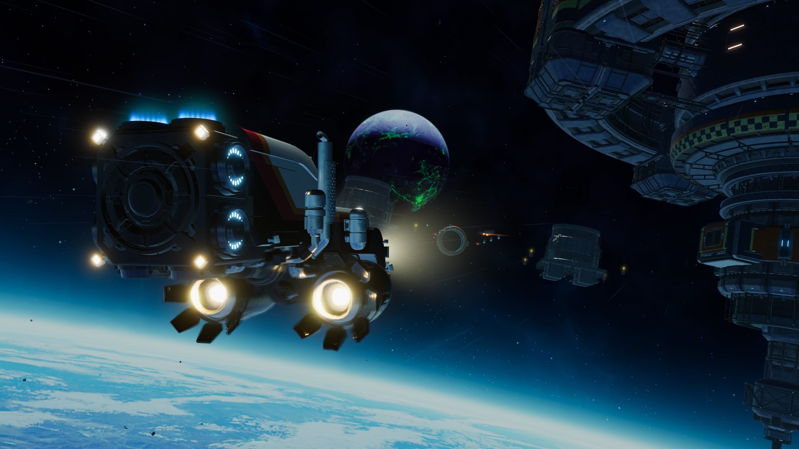 It can be hard not to focus entirely on the negatives — they’re the things you want to talk about. Despite the issues I had with my experience playing Star Trucker, I can feel the strong base that the game is working from. Once past the early game hardship, I enjoyed the vibe of turning on the in-game radio and just delivering cargo; the core gameplay loop is there, and it works, but in the end, it just felt like it was missing something. The need to manage truck systems provides an interesting twist but is too simple to remain engaging, similarly when Star Trucker is able to embrace its relaxed gameplay in stunning environments, it feels wonderful, but star systems feel small when just passing between gates, the busiest of systems manage to feel empty and frequent framerate drops contribute to the shattering of that atmosphere.