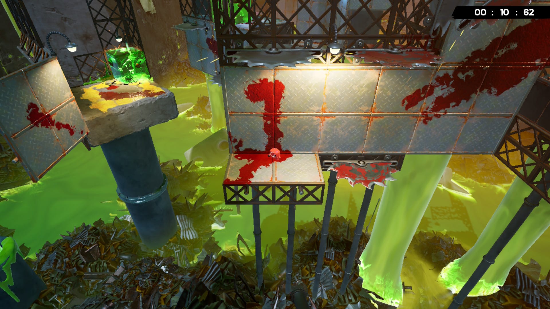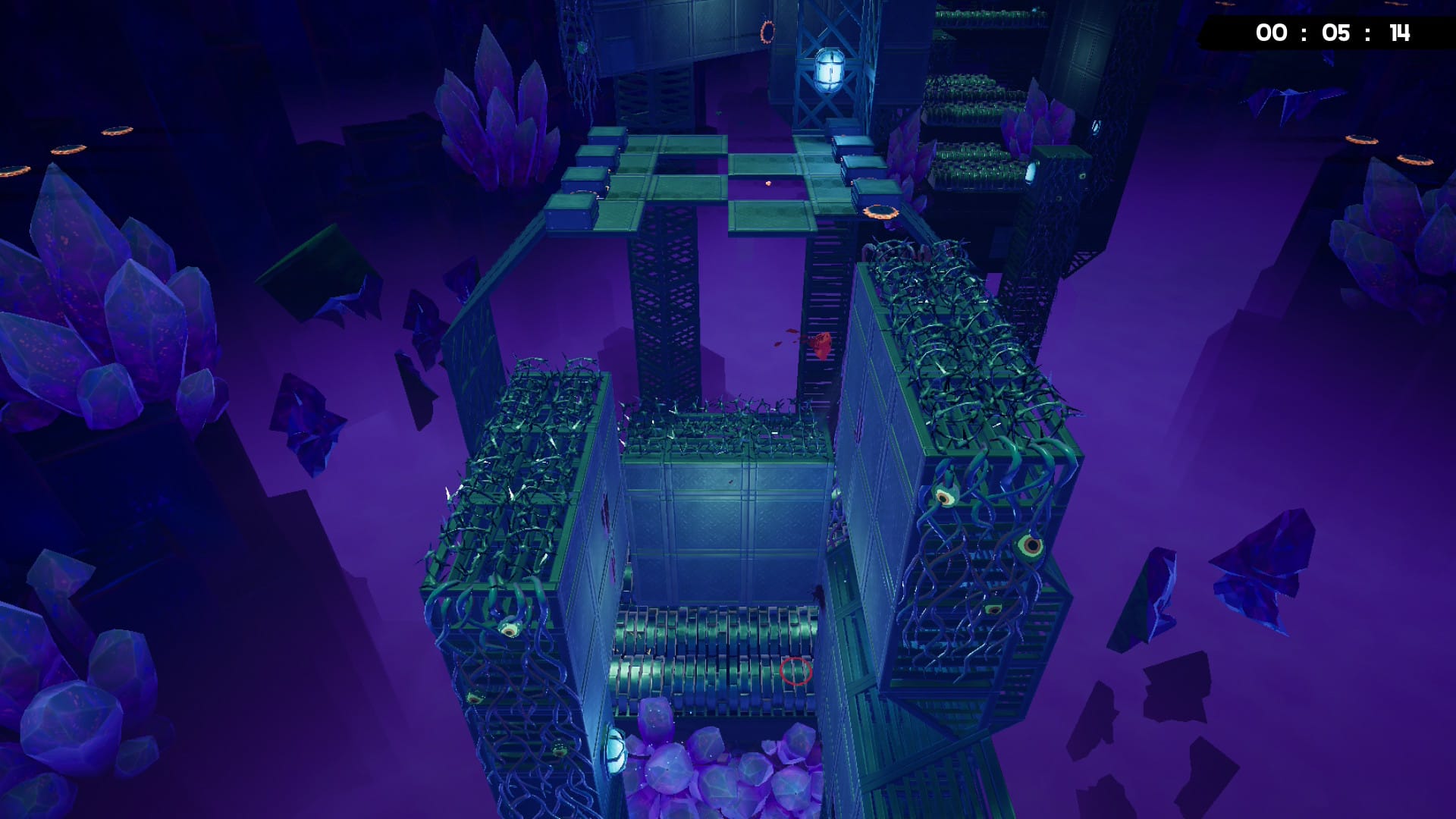 Levels are built using fixed camera angles to guide your perspective. This design choice is inspired since it prevents the chaos that a fully free 3D camera might introduce while still allowing for spatial complexity. As a result, you can approach levels in slightly different ways. For example, you might commit to one path, mess up mid-run, and suddenly find yourself improvising a new route on the fly. Better yet, you may find shortcuts for faster completion of the level. In any case, this lends itself to many edge-of-your-seat moments.