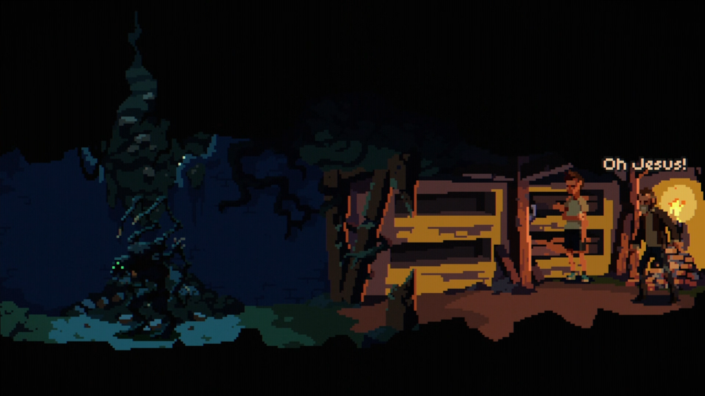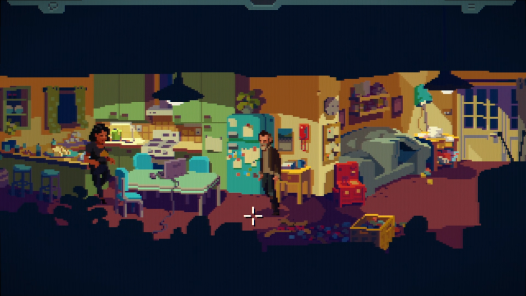 This is achieved through two main things. The first is the mystery itself. The premise hooks you immediately within the first chapter and keeps that interest alive all throughout. The story’s twists and turns provide you with a narrative that keeps you constantly guessing; even when you think you might have a idea on what direction the plot will take the game throws a curveball into the mix and completely subverts the player’s expectations in a phenomenal way. The game’s soundtrack and art style also help the mystery flourish too. The soundtrack provides different melodies relating to what’s happening in the chapters, but always with an amazing synth sound to boot. The art direction also adds more to the world and its environments with a pixelated style that adds a lot of style and character to the overall visuals.