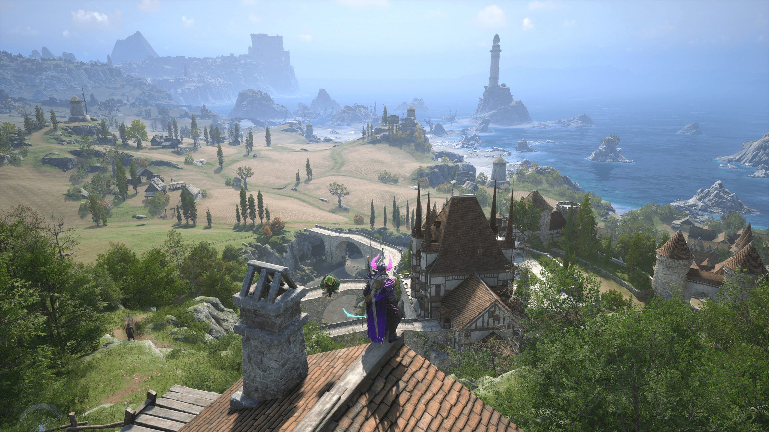 Fortunately, the scope and setting elevate Throne and Liberty. NCSOFT has done an outstanding job at making Solisium a place you really want to explore. The first hub of T&L is the medieval city of Kastleton. You can explore its cobbled streets, shop from vendors, visit the auction house, and traverse rooftops. You can reach Kastleton’s highest points and take in the surrounding views thanks to the technically impressive draw distances. The scope of the T&L world becomes clear and you soon realize NCSOFT put in the effort to entice you to explore as far as the eye can see. T&L also has scattered pieces of lore around, including books, notes, and more to round-up the world-building.