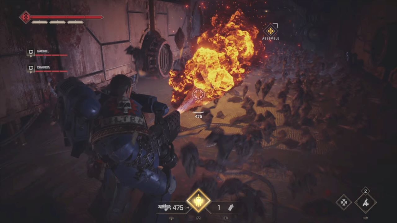 An essential technique the player must understand if they want to stand a chance is that Tyranids are linked to the greater hive mind in orbit. Larger, more dangerous enemies act as receivers for the greater Tyranid intelligence. In practice, this means that if you kill the big bug, all the little ones die off. This design keeps the swarms of Tyranids threatening throughout the game while not overwhelming the player if they understand how the enemies work. The design leads to gameplay that looks like senseless slashing but, in reality, is very deliberate.